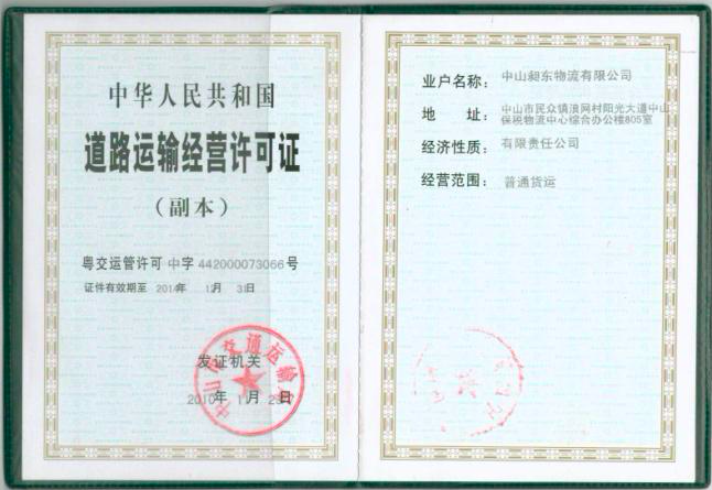 • Road Transport Business License