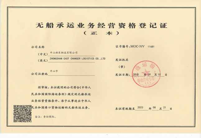 • Certified enterprise certificate of AEO Certificate (East Changer logistics)